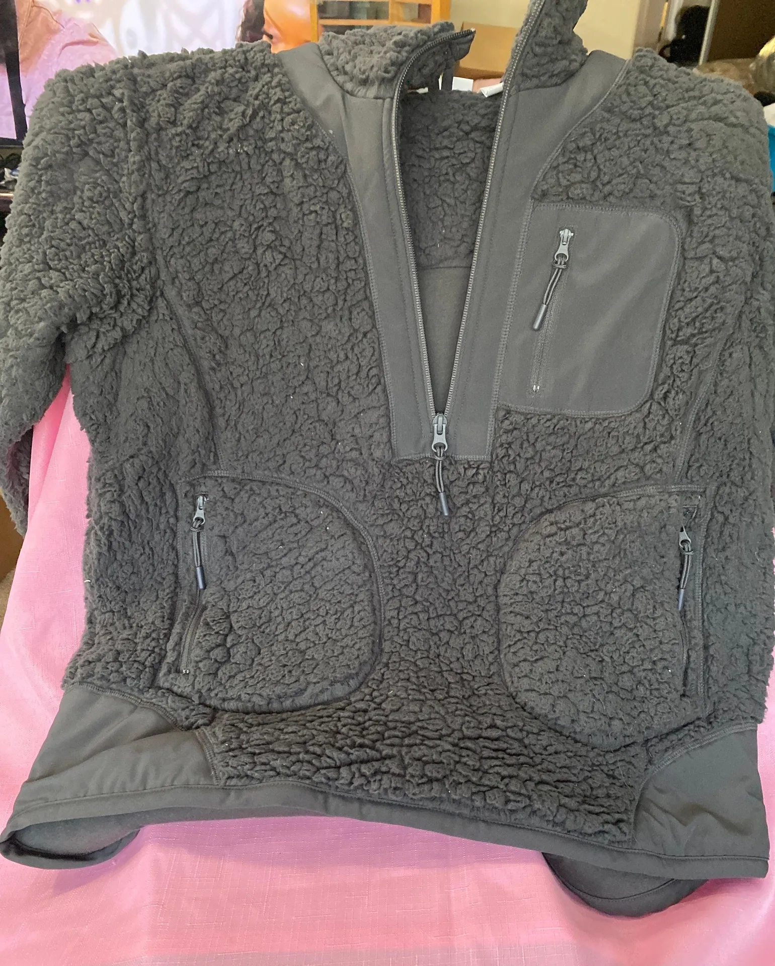 This is a really nice gray color zip up Fleece jacket size medium. 3 front zip pockets,