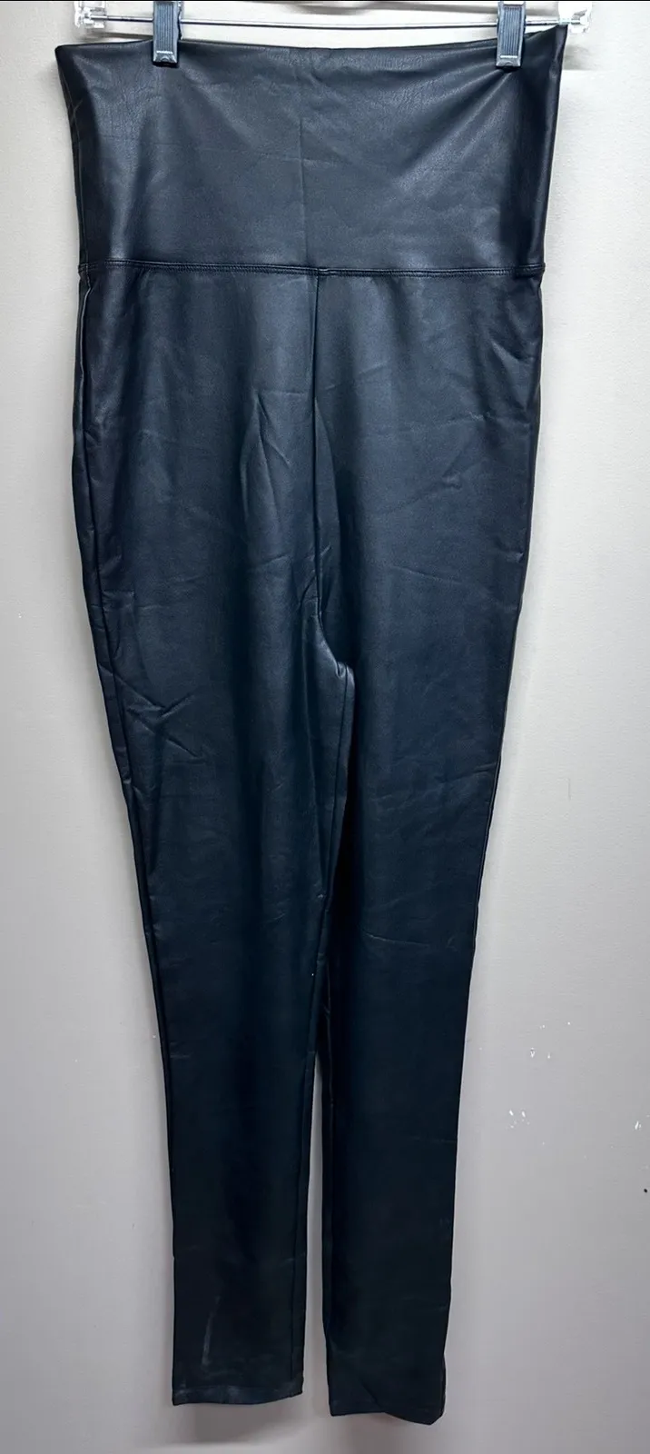 Zenana Outfitters high-waisted faux leather leggings in black. Crafted for a sleek and flattering silhouette, these leggings offer a stylish alternative to traditional denim. Perfect for a night out or elevating your everyday look. Keywords: faux leather, leather look, vegan leather, stretch, comfortable, fashion, trendy, bottoms, apparel, pants, tight, slim fit
