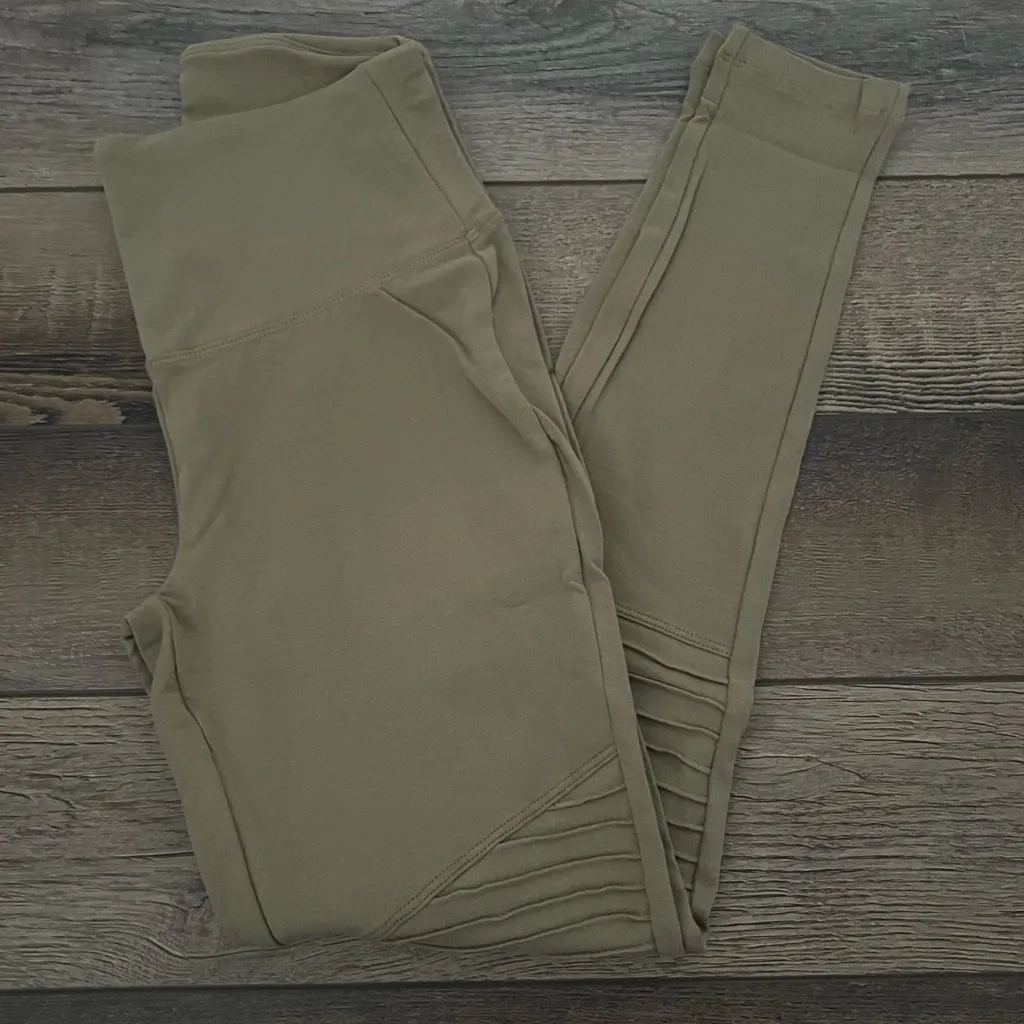 New in bag: only taken out of bag to photograph Feel comfortable on the go in Zenana's Moto Leggings! Zenana Cotton Wide Waistband Moto Legging OP-1818AB Features: High Waist Wide Band Cotton Blend Moto Design Hand or machine wash cold Tumble or hang dry. Details: FABRIC: 95% Cotton, 5% Spandex