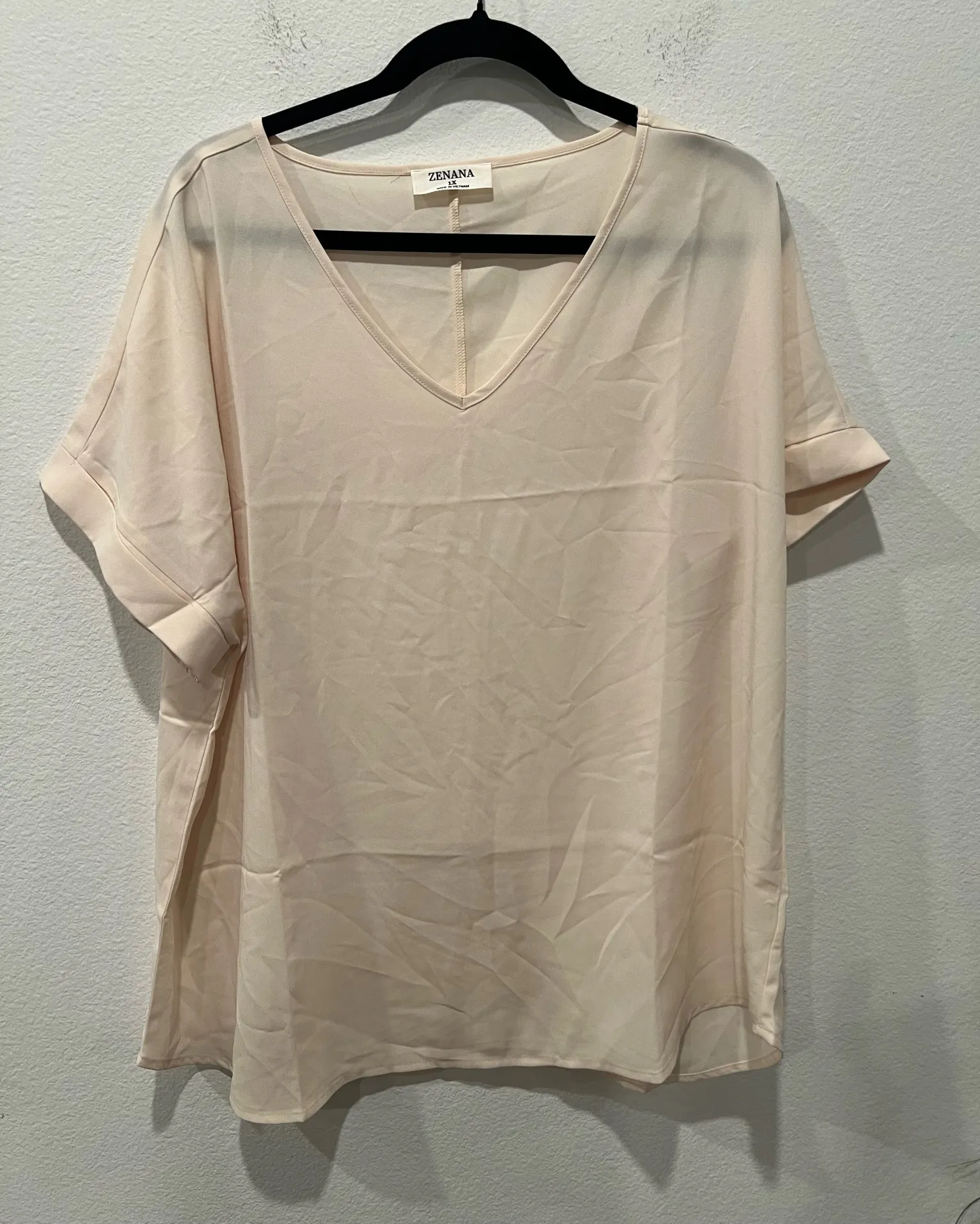 Zenana Outfitters Women's Cream V-Neck Top Size XL by Zenana Tan - $8 - From mood