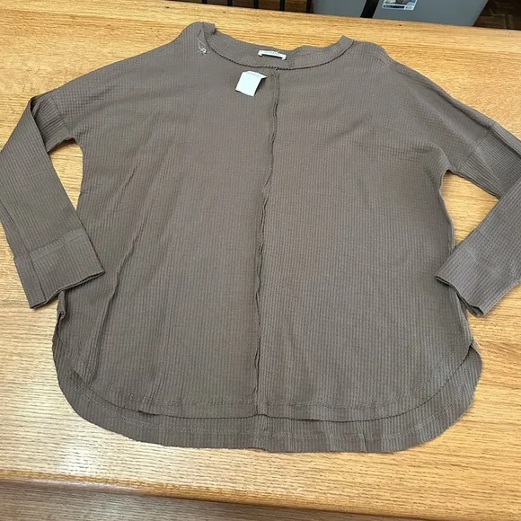 Zenana NWOT waffle knit exposed seams crew neck brown/green color L/XL 26” p2p Brown - $40 - From Rachel