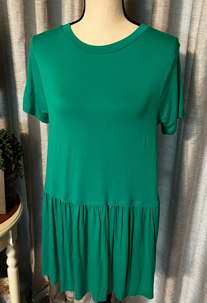 Zenana Premium Color: green layered t-shirt short sleeve tunic dress size small S raw hem 93% ra... Show more