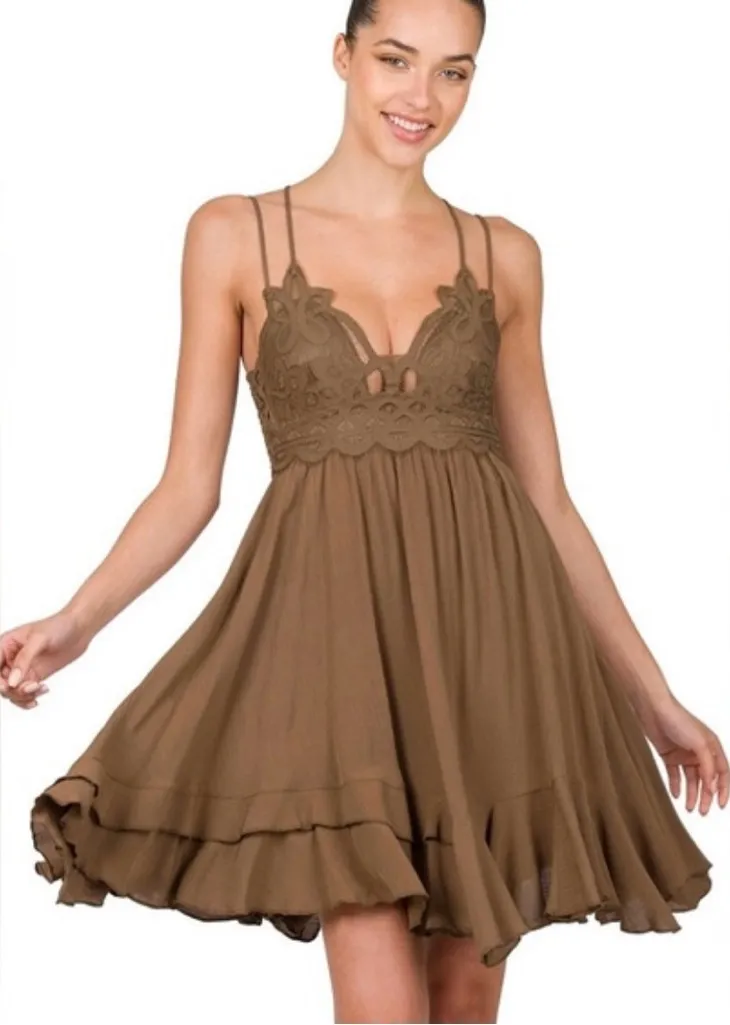 Zenana Ridfle Lace Slip Dress Large Brown - $25 - From Amy
