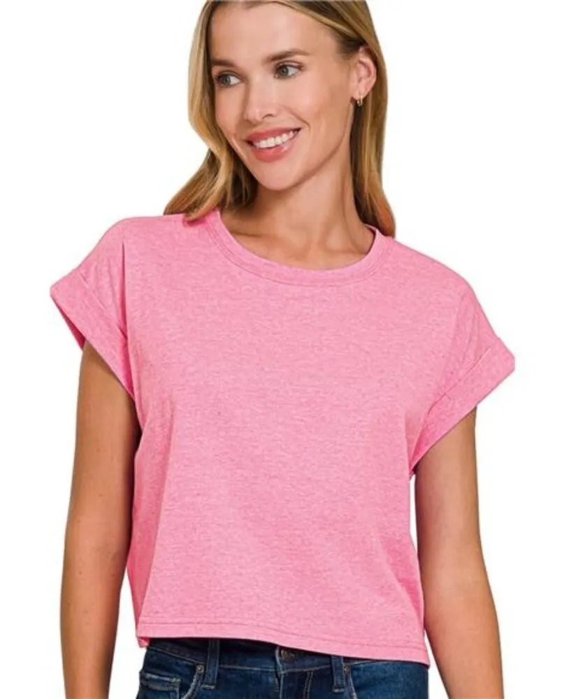 *Features:Basic style *Stretch:No stretch *Material composition:100% COTTON *Care instructions:Machine wash cold. Tumble dry low. *Imported *Product measurements: *This fashion cropped t-shirt features a comfortable relaxed fit in a refreshing mint color. Made from a soft, breathable fabric blend perfect for everyday wear. The rolled cap sleeves and classic round neckline create a casual yet stylish look. The cropped length hits at the perfect spot to pair with high-waisted bottoms. The versatile design makes it easy to dress up or down for various occasions. The stretchy material ensures comfort while maintaining its shape throughout the day. *S:Bust 34-36 in, Waist 26-28 in *M:Bust 37-38 in, Waist 29-31 in *L:Bust 39-40 in, Waist 32-33 in Style No: 10010034832