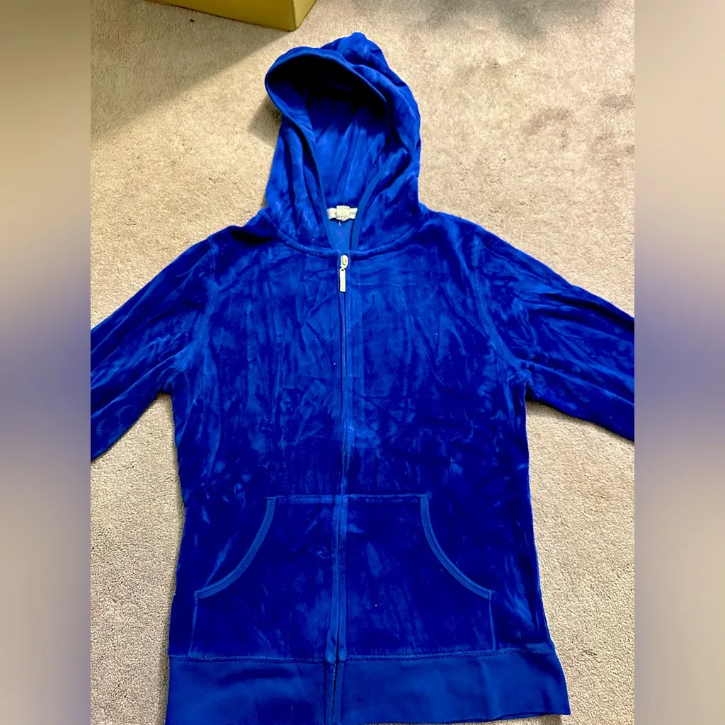 Zenana Outfitters | zip up hoodie blue velvet Size L - $11 - From Jenny