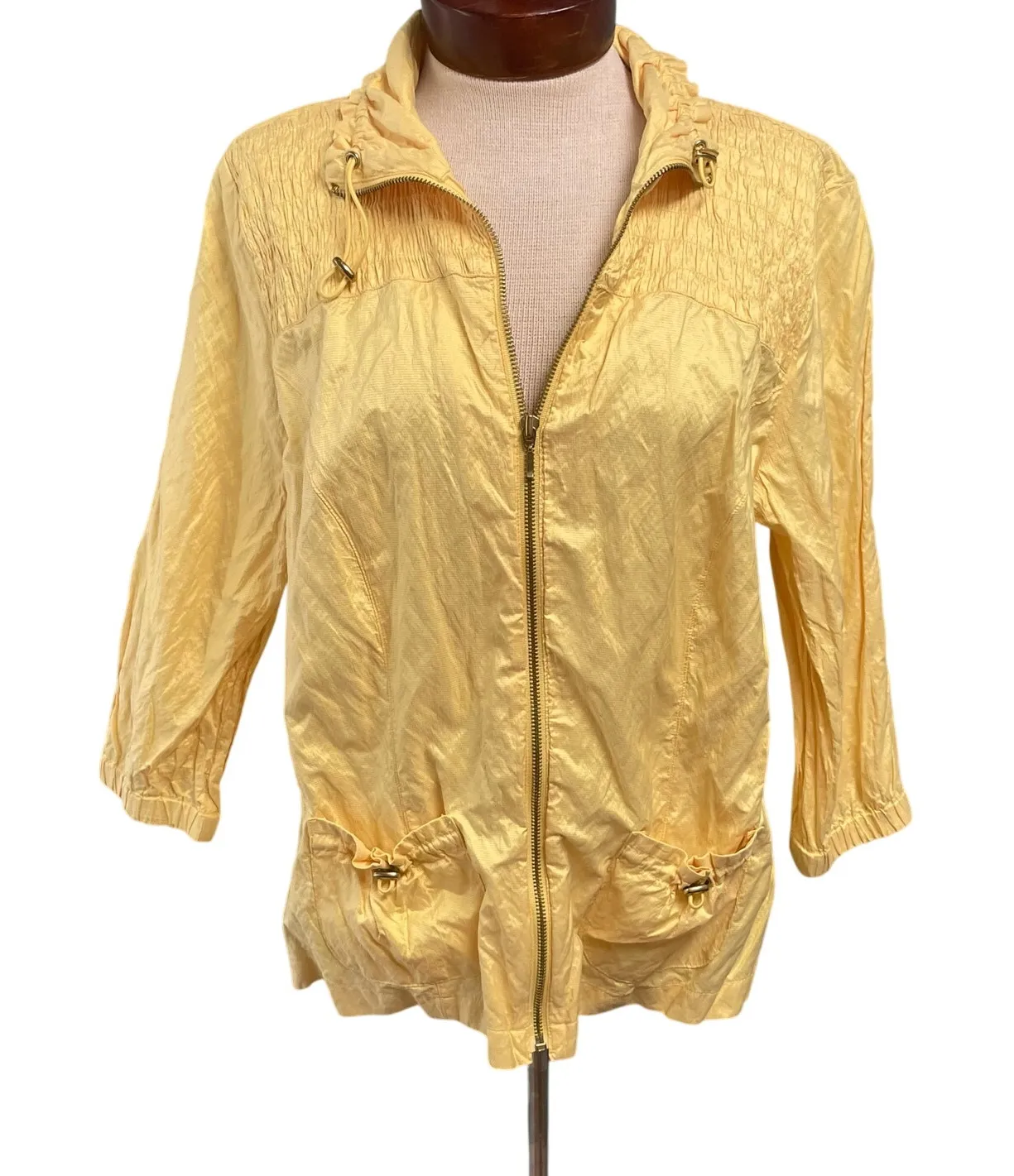 Zenergy Chicos Size 2 Large Yellow Casual Light Jacket Athleisure Coastal Excellent condition, lightweight material, full zip up front with toggle drawstring at the neckline and pockets Casual Coastal Modest Mature Athleisure