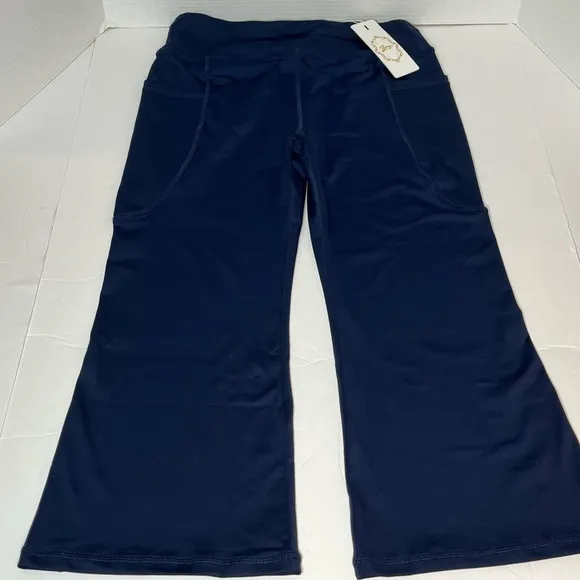 Brand New! Zexxy Size: M Color: Navy High Waist Yoga pants Wide Leg Stretchy 2 Deep Pockets Approximate Measurements: Waistband 3” Pockets 10” Inseam 22” Length (waist to Floor) 32” Width of Wide Leg at bottom 9-1/2” B22