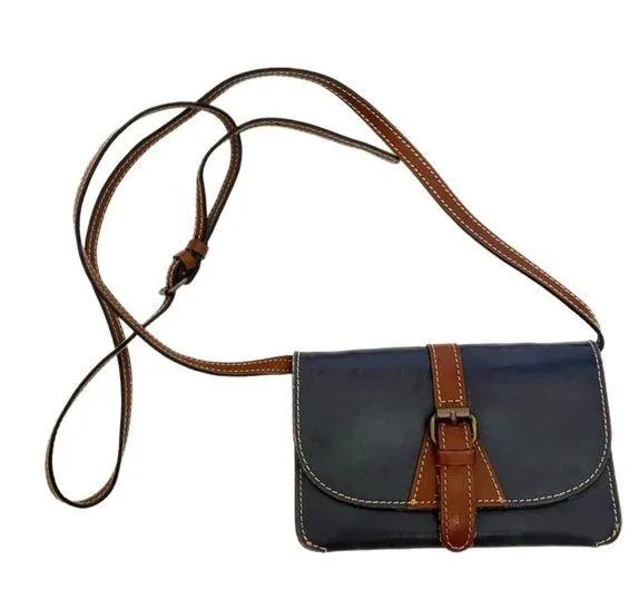 Vintage Patricia Nash Navy Blue leather crossbody bag Flap Closure Interior zip and slot pockets Ap... Show more