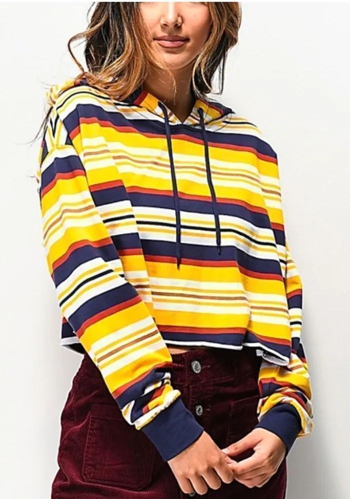 Zine Zumiez Striped Crop Hoodie Women’s Small Yellow - $18 - From Alyssa