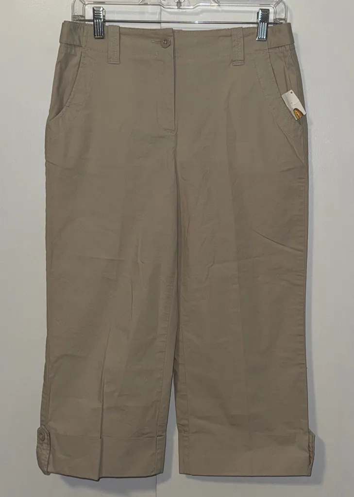 Brand NEW with tags NWT Talbots Wide Leg Crop Chino Pants Khaki Tan Women’s 4 Stretch Cotton. Zip fl... Show more