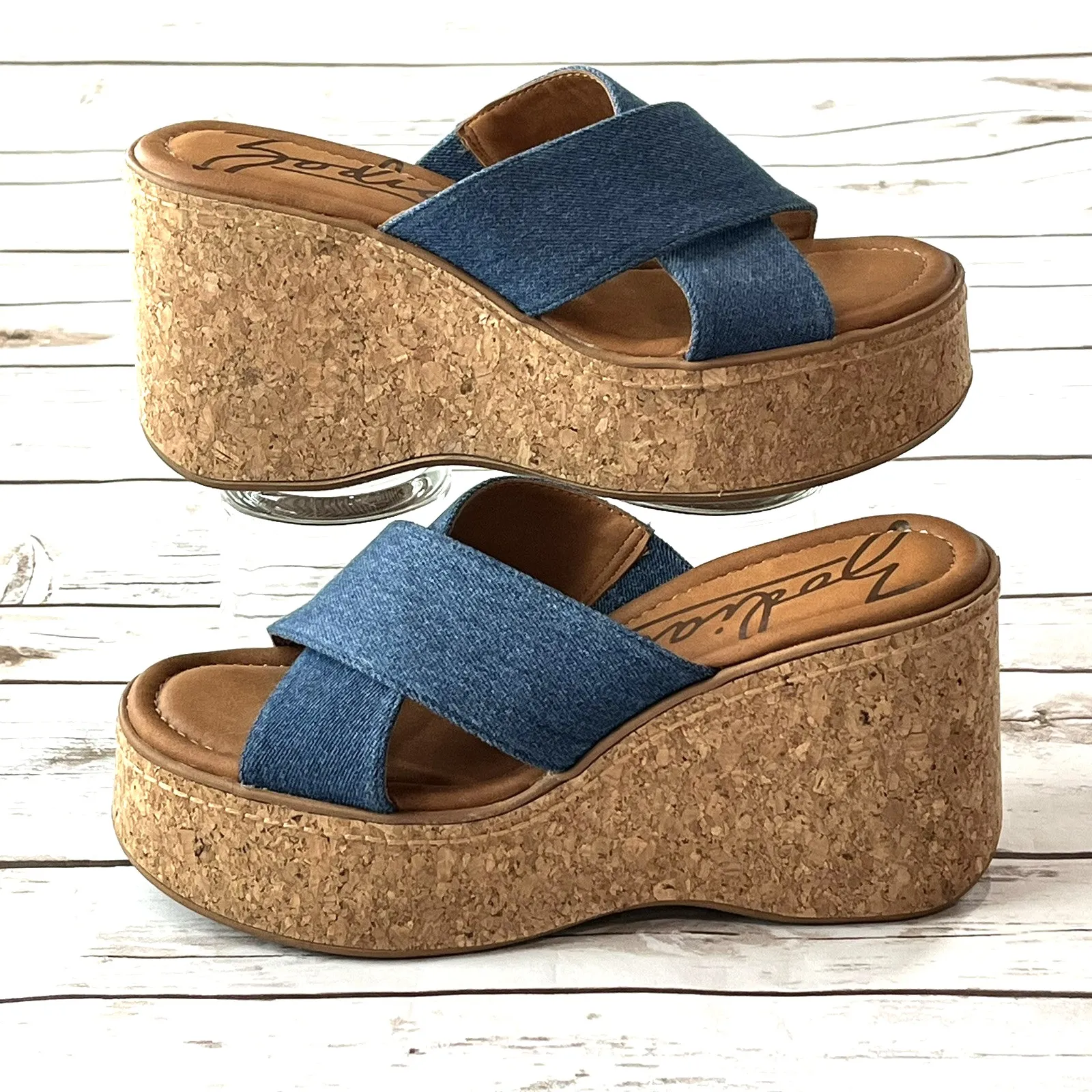 Zodiac Platform Sandal Wedge Slide Women US 9 M EU 40 Denim Cork Heel Chunky Slip On Shoes Y2K Cond... Show more