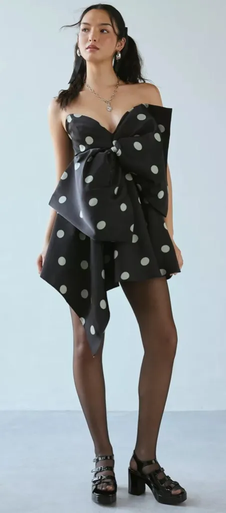 New without tags Product Sku: 94148939; Color Code: Get spotted in this Bardot mini dress in an allover polka dot woven. Designed in an a-line silhouette featuring a strapless sweetheart neckline, bold bow applique across the bodice and an asymmetrical, slanted hem skirt. Finished with an exposed silver zip at the back. Features - Bardot Brydie bow front polka dot mini dress - Asymmetrical strapless mini dress - Polka dot printed woven - Strapless plunging sweetheart neckline - Boning down the bodice - Large bow applique at the front - Exposed silver zip at the back - Slanted asymmetrical hem - A-line fit - Mini length - Lined - Zip closure Content + Care - 97% Polyester, 3% spandex - Machine wash - Imported