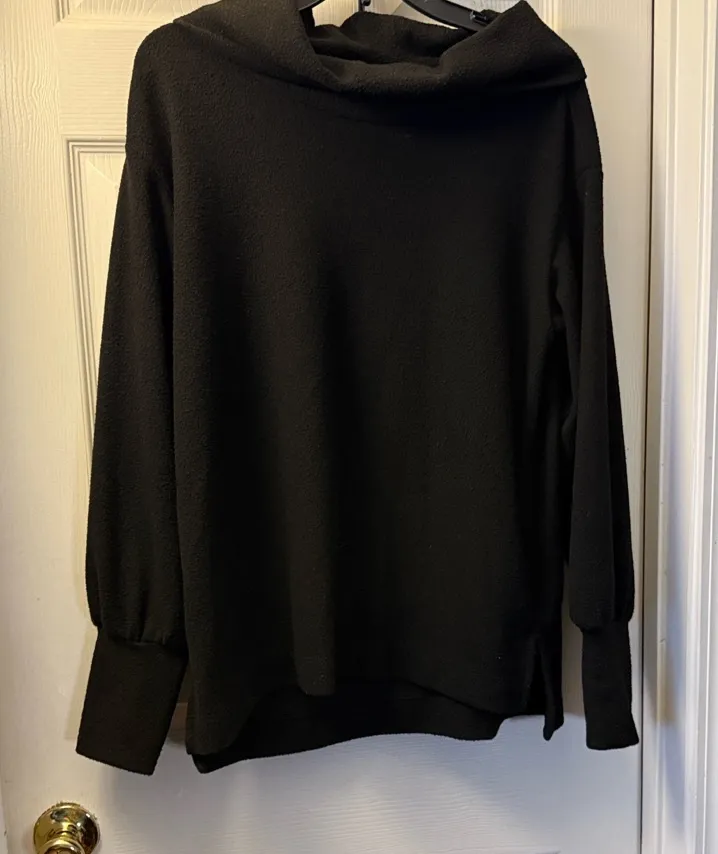 Chic black cowl neck sweater. Soft fabric with a relaxed fit. Ideal for layering.size médium