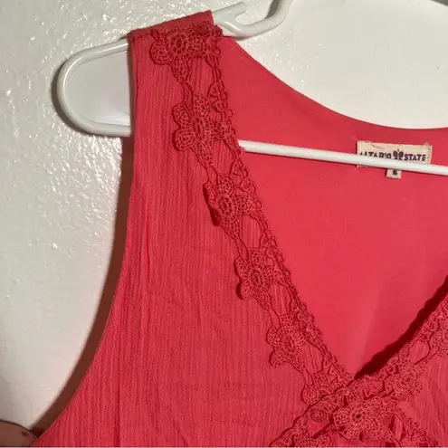 Great condition, minor wear. Altar’d State. Sleeveless swing dress. V-neck. Crochet details. Pink. l... Show more