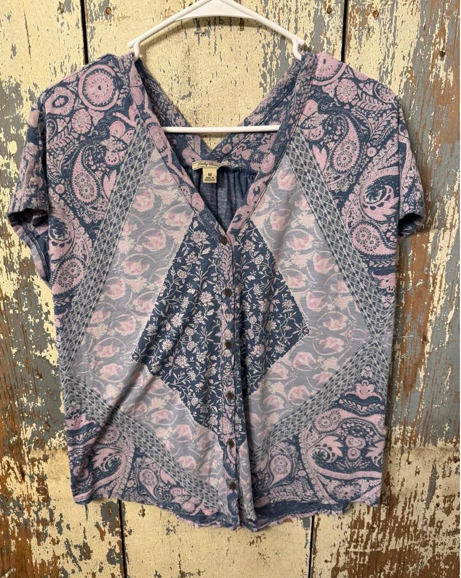 Lucky Brand Blouse Boho style V neck and back with buttons down the front in EUC