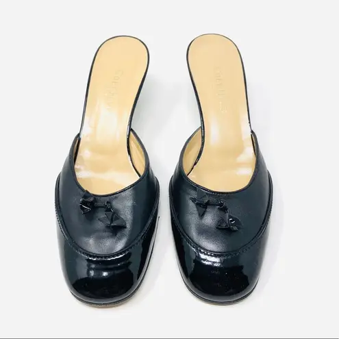 Authentic COLE HAAN black leather with black patent leather, size 8.5, made in Italy. On trend mule... Show more