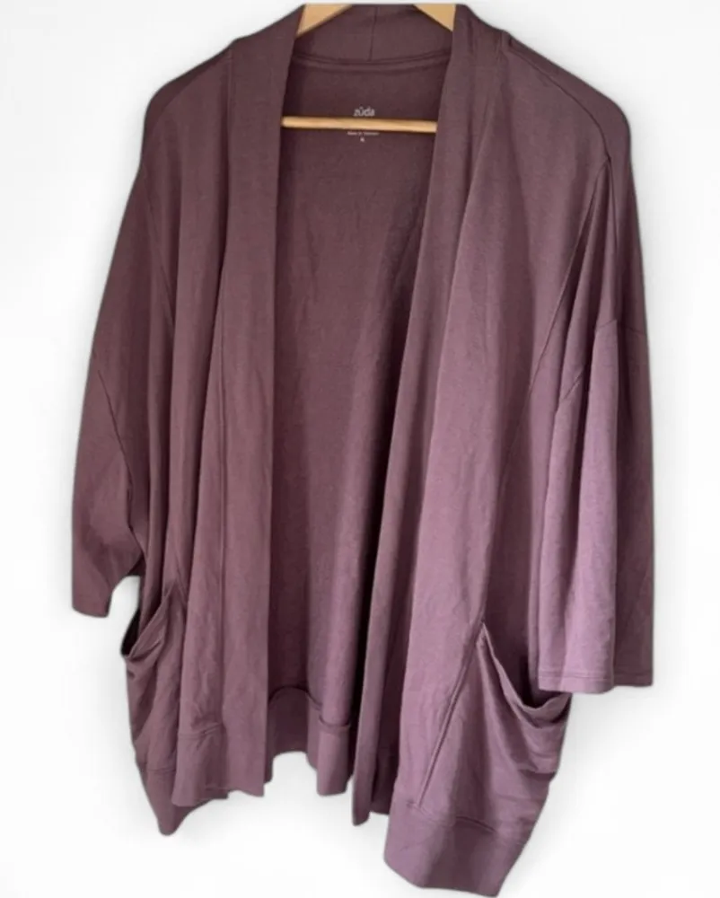 Zuda cardigan Rose Taupe Z-Knit Open Front Topper pink purple XL - $22 - From Adriana