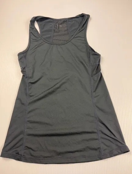 A versatile athletic tank top designed for performance and convenience. This black racerback tank features a sporty design with mesh detailing for enhanced breathability and style. It also includes a practical back pocket with a zipper, perfect for storing essentials during workouts. Ideal for running, gym sessions, or casual athletic wear, this tank combines functionality with a sleek, modern look. Color: Black Department: Women Type: Tank Style: Basic Features: Pockets, Lightweight, Moisture Wicking, Quick Dry, Racerback Sleeve Length: Sleeveless Neckline: Scoop Neck Performance/Activity: Gym & Training, Running, Cross Training, Yoga, Pilates Closure: Pullover Character: Sporty, Athletic, Runner, Gym, Active Keywords: athletic tank top, racerback tank, gym tank, running tank, workout top, black tank top, women's athletic wear, activewear, sports top, tank top with pocket, mesh tank top, xsmall tank top
