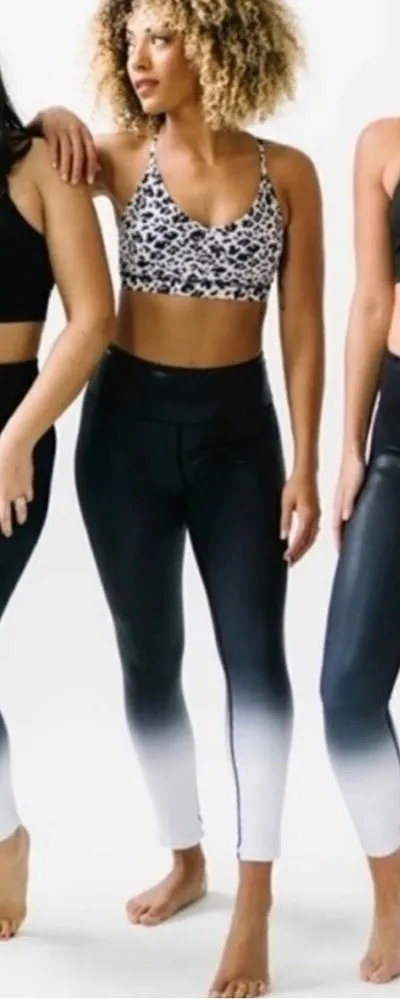 NWT ZYIA Black Metallic Ombre Light n Tight Hi-Rise 7/8 Leggings SZ 14-16. A high, compressive waist stays put. Stay-up power supported by an encased band of elastic at top of waistband. Compressive fabric offers muscle support during long workouts (or nights out). Bold metallic leggings with unique ombre styling. Black White. Liquid leggings. Wear them everywhere not just to work out! Approximate flat lay measurements are: 16” Across Waistband, 11” Rise, 24.5” Inseam Women’s size 14/16 from ZYIA Please use the provided measurements to measure against a pair of leggings you already own to determine best fit. Zyia Black Metallic Ombré Light Tight High Rise Crop Legging White Liquid 14/16
