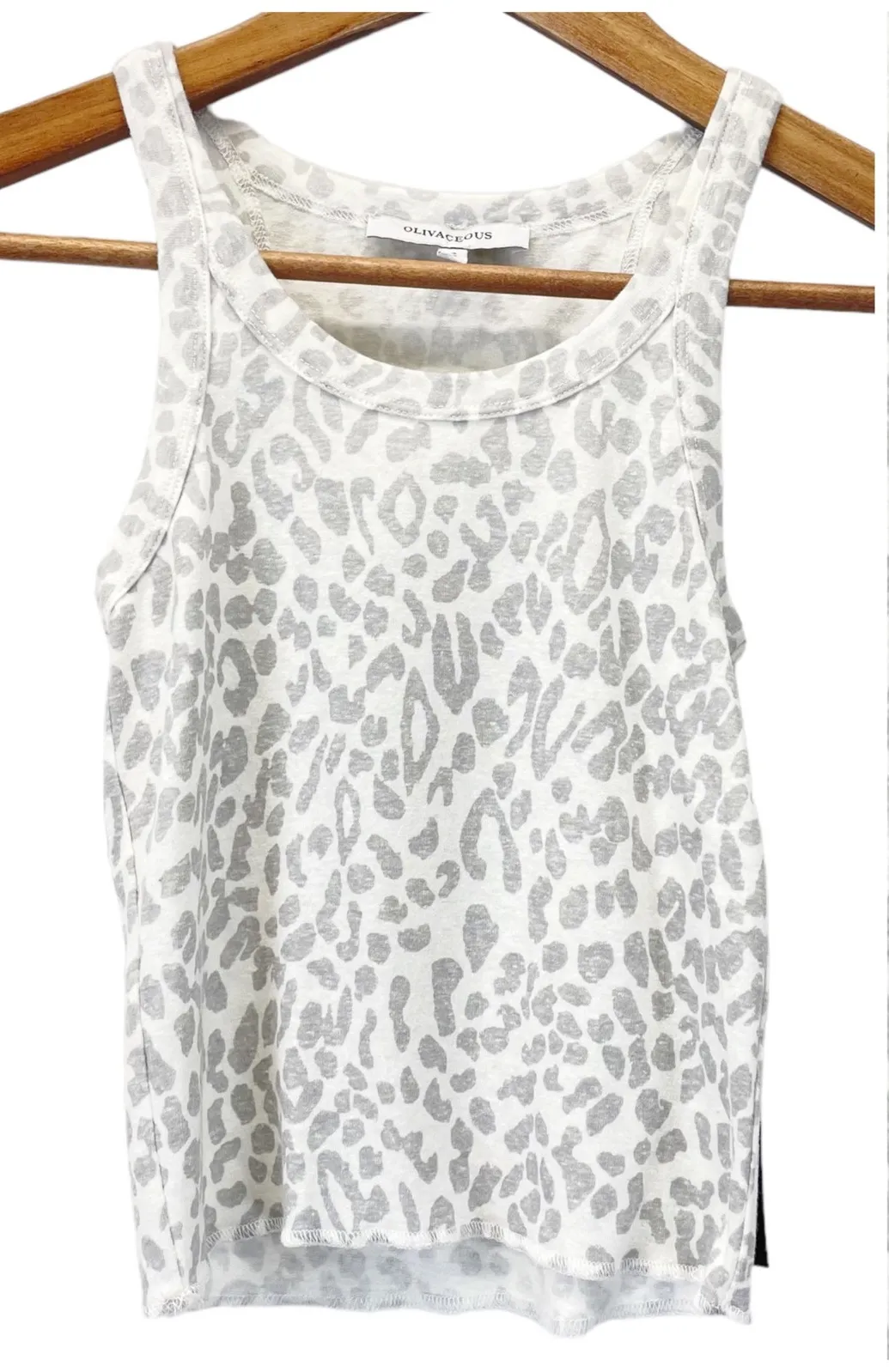 NEW Olivaceous Tank Top Animal Print Cream Gray Round Neck Cropped -Women's S -Stretchy knit fabr... Show more
